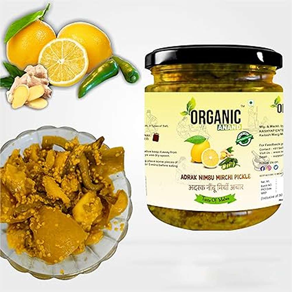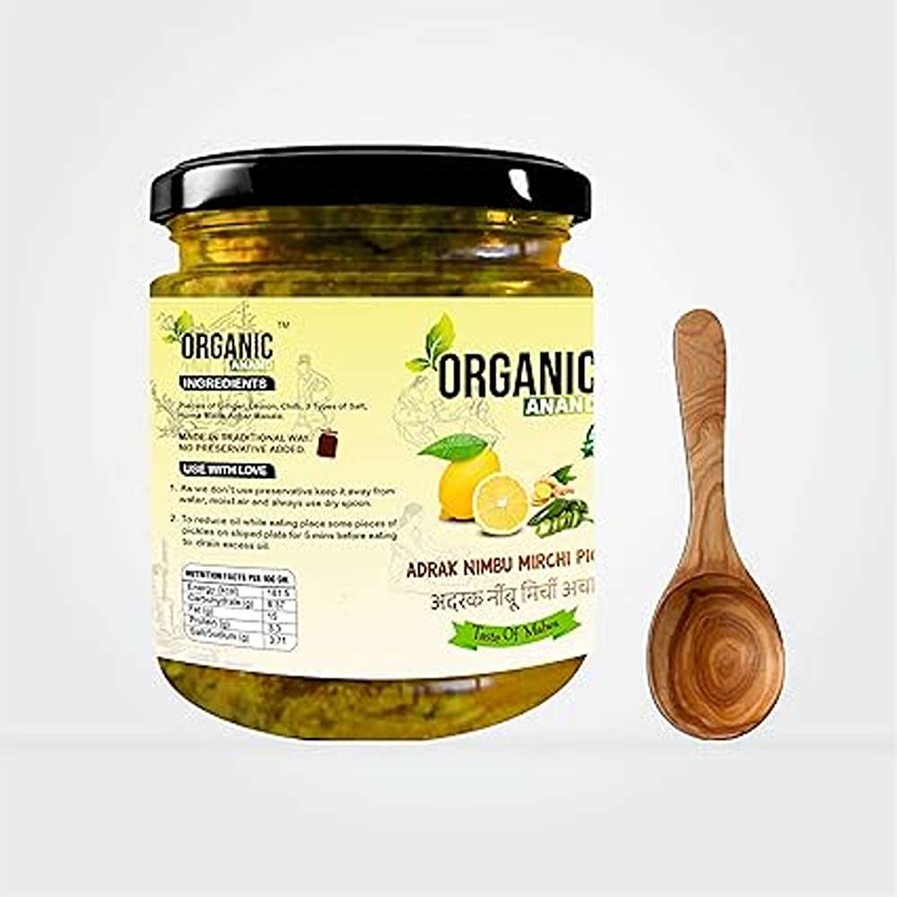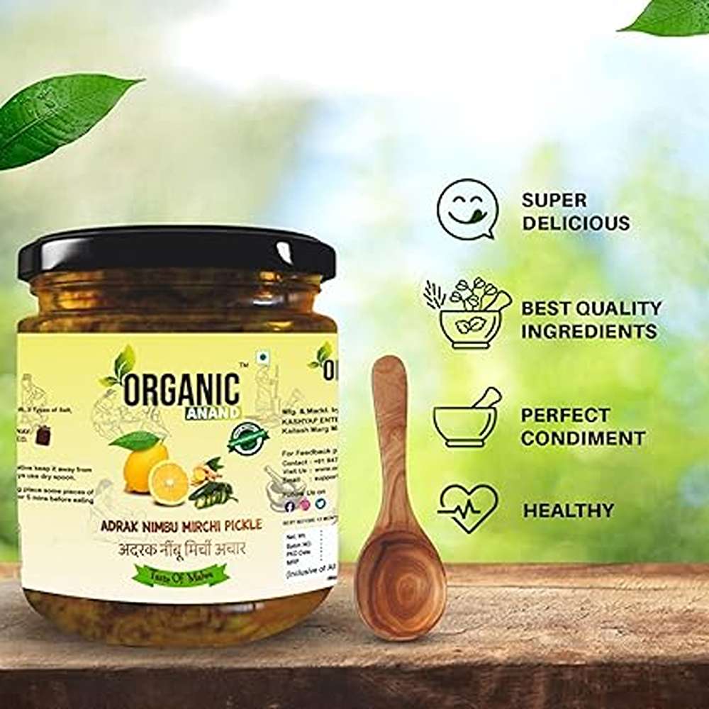 Organic Anand Homemade Ginger Lemon Green Chilli Mix Pickles 500gram Khatta Mix Ghar ka Achaar with Neemwood Spoon Flavourful, Delicious, Traditional Taste