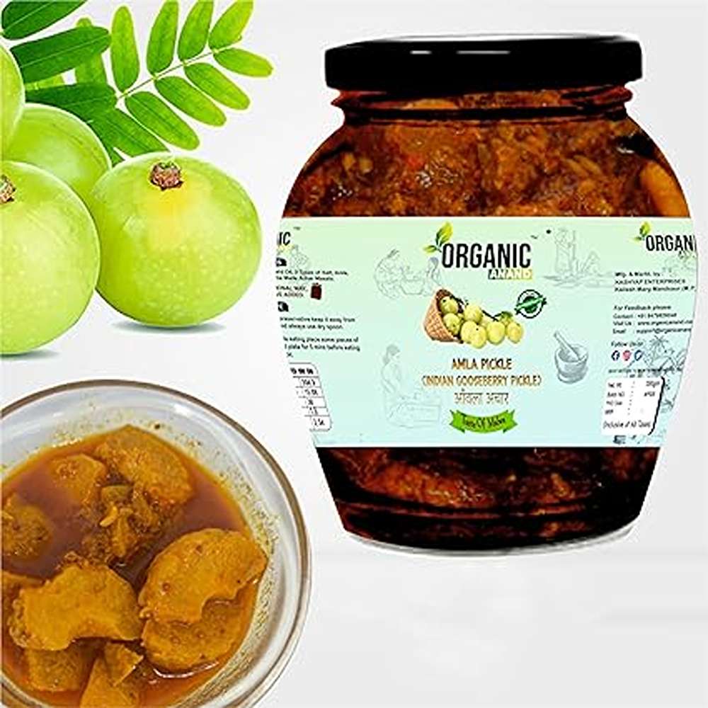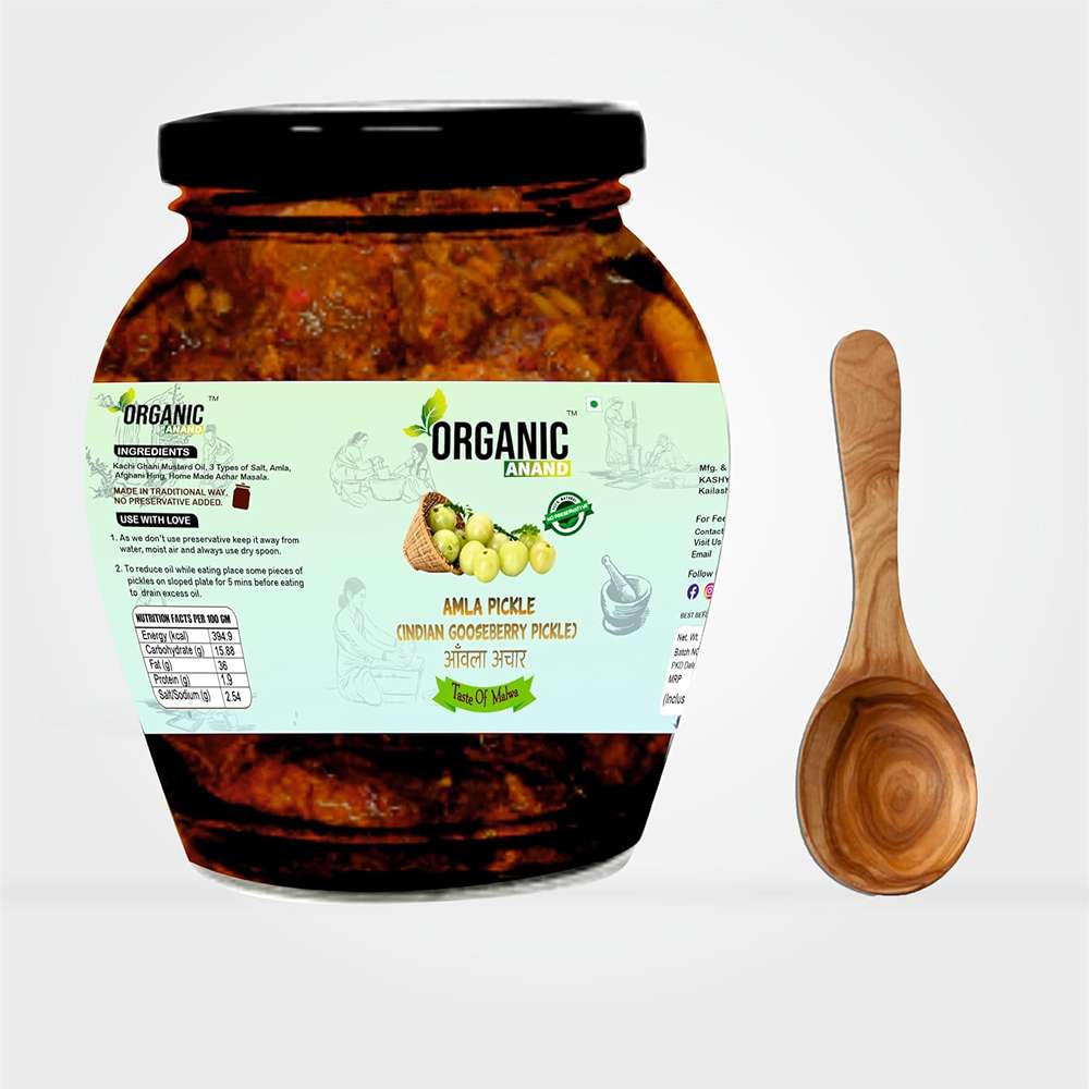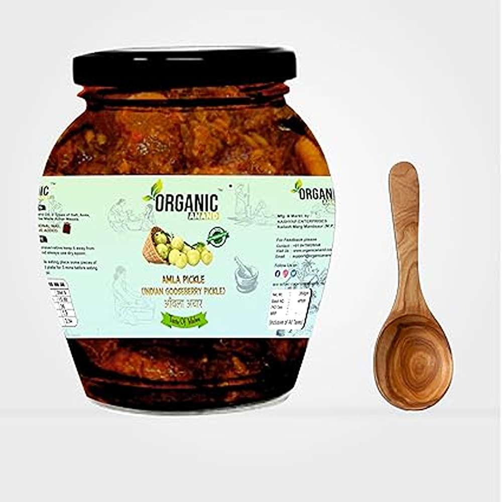 Organic Anand Homemade Amla Pickle 350gm Traditional Indian Gooseberry Ka Achaar with Neemwood Spoon Flavourful, Delicious Taste