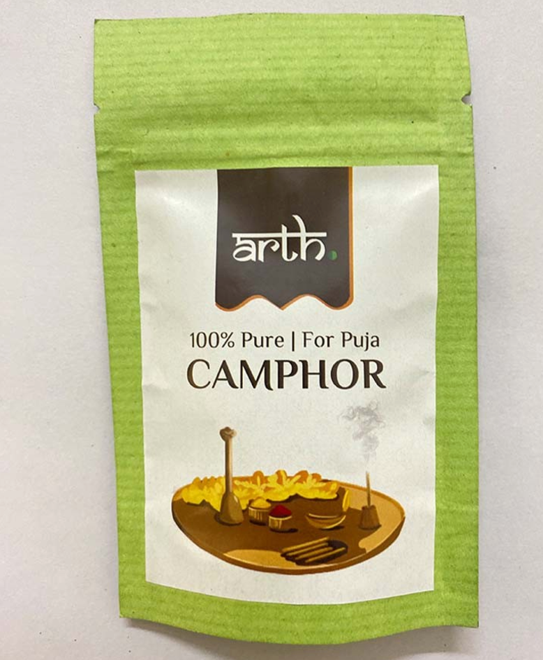 Camphor (Kapur) Is A White Crystalline Substance With A Strong, Pungent Aroma That Is Commonly Used In Hindu Puja Rituals. It Is Believed To Purify The Environment And Remove Negative Energies, Making It An Essential Component Of Many Religious Ceremonies And Rituals.