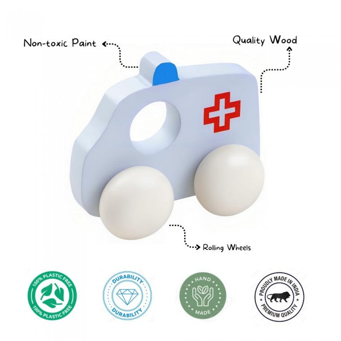 We are committed to providing safe and eco-friendly toys for your child. Our wooden ambulance toy is crafted from responsibly sourced wood and coated with non-toxic water-based paints, ensuring the safety of your little one while promoting environmental sustainability.