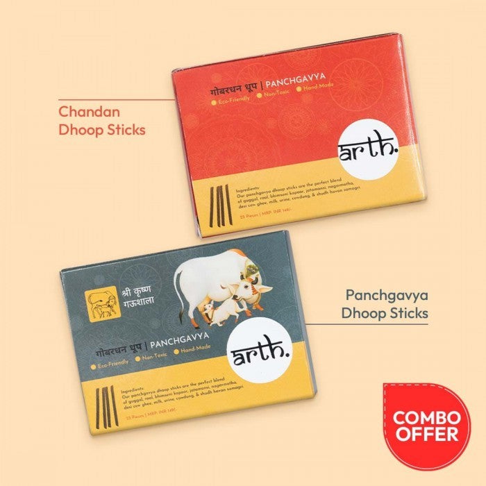 Rejuvenate And Heal With Our Dhoop Sticks Combo Pack And Enter The Zen Mode With The Soothing Aromas Of Chandan And Natural Herbs. The Combo Pack Fuses With The Therapeutic Properties Of Panchgavya And Ayurvedic Herbs To Purify Your Mind And The Living Space. Our Dhoop Sticks Are 100% Natural, Safe To Breathe, And Ideal Immunity Boosters. Handcrafted By Rural Women Artisans Keeping Your Wellness In Mind.