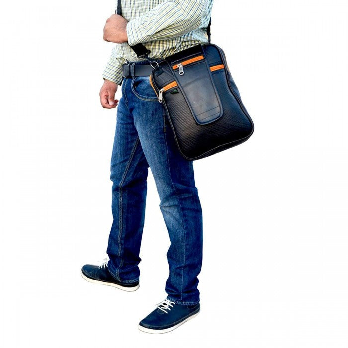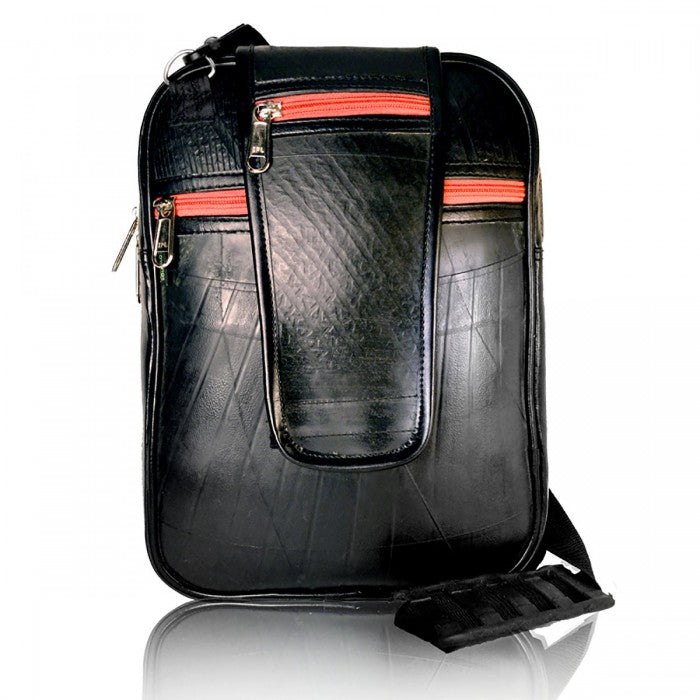 It Is A Unisex Bag, Designed For Office, Travelling, And College Purpose. Apt Design For Bike And Bicycle Riders. Front Flap Outside Of The Bag For Goggles, Keys Etc. One Pocket On Front & One Large Pocket Is Back For Mobile, Charger, Tablet, Stationary Papers, Wallet Etc. Small Sections Inside The Bag For Diary, Pens ,Marker Etc. Sufficient Space For Mac Book, I-Pad, Books, Register. Perfect Design To Keep 1 Litter Bottle Inside Along With The Lunch Box. Cruelty Free, Animal Friendly And Ecofriendly Product Made Out Of Vegan Leather (Upcycle Tyre Tube). Shoulder Strap Made With High Quality Car Seat Belt. Highly Durable And Stylish Design. Feel Proud To Carry This Vegan Leather Sling Bag And Be A Green Contributor! Please Note : We Assure You The Product Shape And Design Will Remain Same With Good Quality But The Texture May Slightly Differ As Every Inner Tube Has Its Own Identity And Different Texture Pattern.