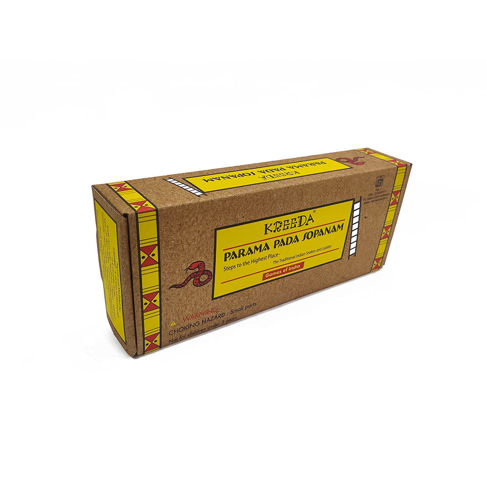 Parama Pada Sopanam means Steps to the Highest Place (where Parama Pada means highest place and Sopanam means steps). This is a traditional version of the popular game of Snakes and Ladders. The game was believed to be symbolic of a man’s attempt to reach God. The ladders represent virtues, and the snakes represent vices. The snakes carry names linking them to stories from our epics. Kreeda has slightly modified the traditional game to appeal to today’s children. Printed on a 2ft by 2.5ft canvas, the game is attractively designed and appealing. All the snakes in the games have names such as Bakasura, Kumbakarna etc. which are representative of certain vices. The instruction sheets with the game give a short story of these characters to make it more appealing to children and parents.