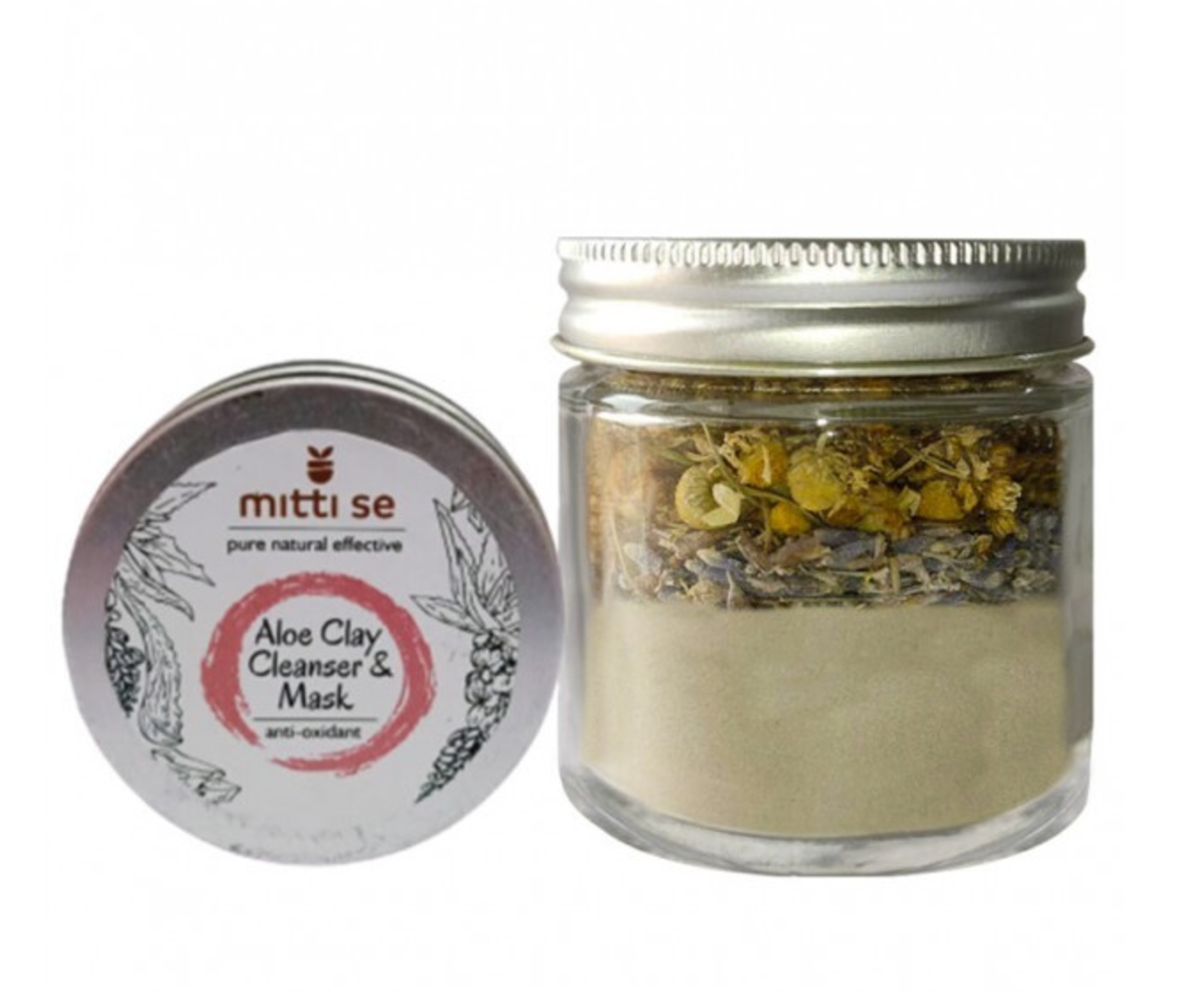 A Deeply Invigorating and Healing Cleanser and Skin Firming Mask Prepared using nutrient-rich river bed mud from the Rain forest of Central India by an elaborate process, the mud is soaked in Aloe Vera juice several times until completely saturated. It is then strained, cleaned and made into a fine powder. Dried flowers of Lavender and Chamomile are added. Removes toxins settled deep within the Skin Nourishes, Moisturizes and Stimulates Natural Healing Mineral-rich with vital nutrients for skin Improves Elasticity, Minimizes Pores, Wrinkles, and Firms up the Skin Leaves skin feeling visibly clean, revitalized, refreshed and soft Suitable for all Skin Types including very sensitive skin. Can be used instead of Soap for daily cleansing Ideal Alternative to soap and shampoo for Babies We prepare and sell our masks as a Dry Product with no moisture whatsoever. This allows them to be 100% natural and pure, with no preservatives. This also gives you a choice to create a mask that suits your skin type. How to Use: Take 1 tsp of clay and dried flowers. Crush them well to make a fine powder. Mix with plain water and add one tsp Mitti Se Rose Water to make a thick paste and apply immediately as the magnetic pull from the Wet Clay will draw out deep settled Toxins from Skin cells. Apply a fine layer, allow it to dry, rinse off. For Deep cleansing and nourishment, use as a mask for at least 20 minutes, twice a week. If your skin is very dry then put a couple of drops of Mitti Se Face Serum or Mitti Se Pure Almond Oil while preparing the Mask. Soap not required. Suitable for all skin types. It can be used as a mask by 20-year-old or above. Making of the Product: The clay is taken from a river bed that flows through a forest farm near central India forest. This clay is highly rich in minerals that purify and heal the skin. Wet clay is dried and strained to remove tiny stones. It is put in big earthen pitchers, freshly extracted Alovera juice is poured on to it and let it sit for few weeks. Every couple of days Aloevera juice is poured in the pitcher full of clay until it is completely saturated. It is then taken out and dried well. Using a very fine strainer the black clay powder is strained one last time and now it is ready to be packed. Dried flowers of Lavender and Chamomile sourced from organic farms are added.