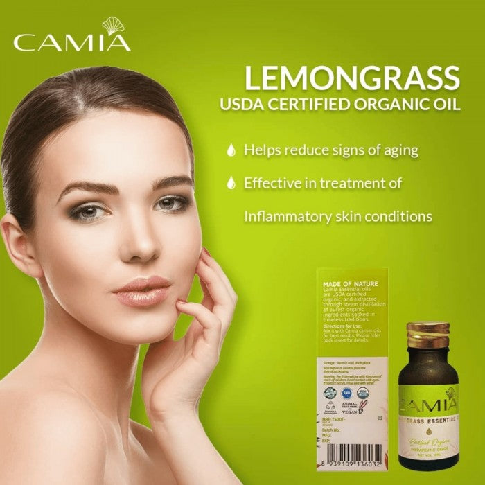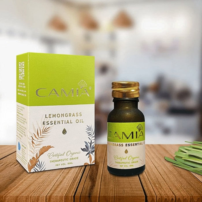 CAMIA lemongrass essential oil is among the most preferred fragrances in aromatherapy. It possesses a natural fresh citrus scent that helps uplift mood and create a feeling of freshness. The organic oil has a pale yellow color and a thin texture.