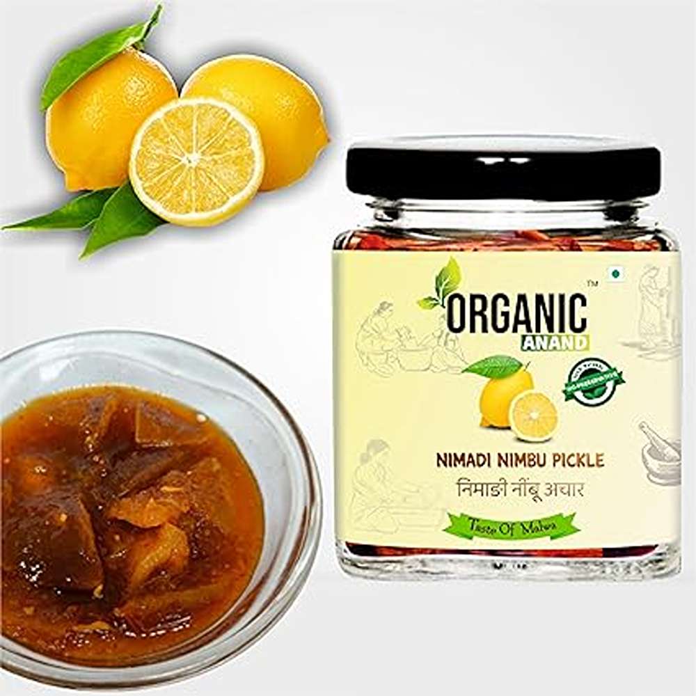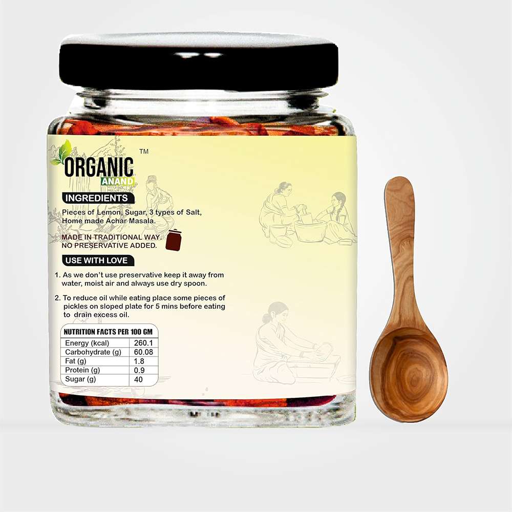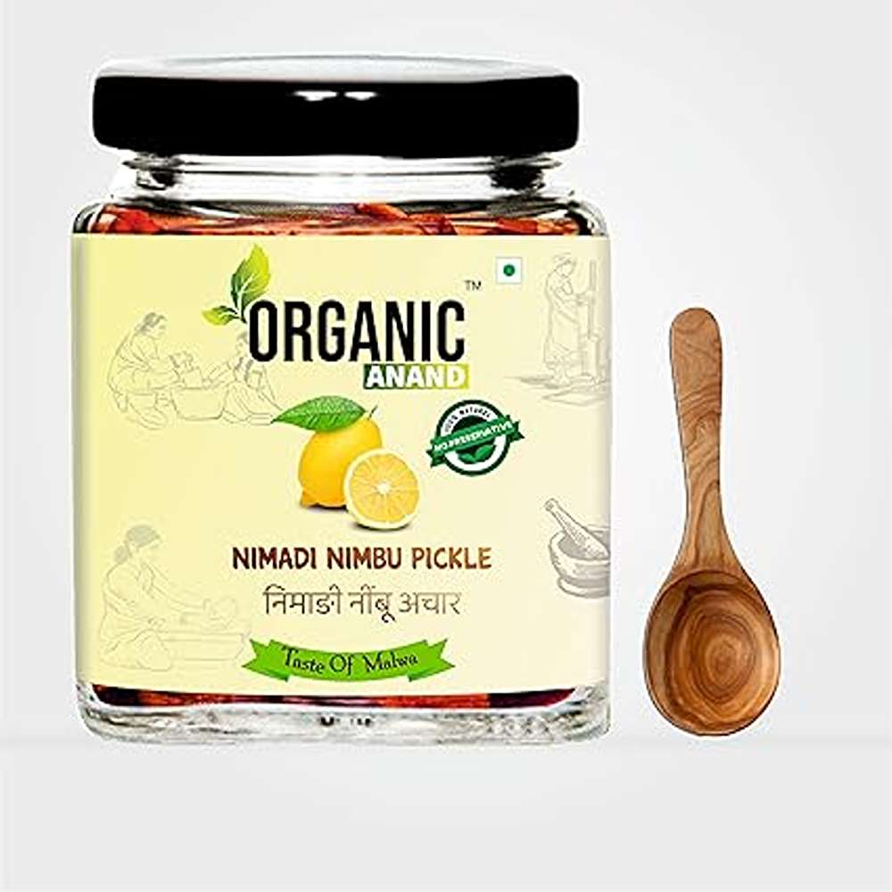 Organic Anand Homemade Nimadi Lemon Pickles 250gram | Khatta Mitha Nimbu ka Achaar with Neemwood Spoon | Flavourful, Delicious, Traditional Taste (Pack of 1)