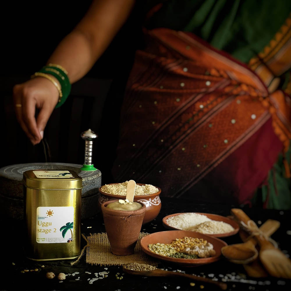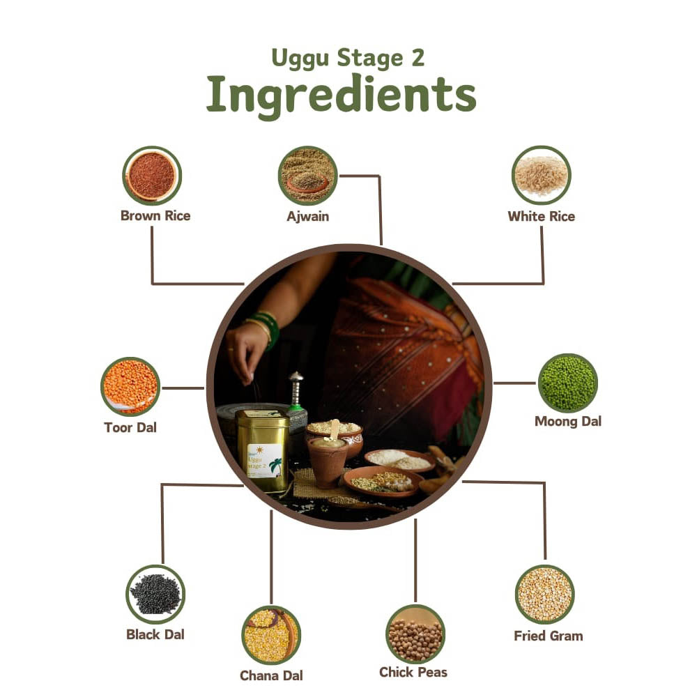 Little grown ups, demand more and we know how meet their demands naturally, we have handcrafted some rice along with lentils, pulses & ajwain for their easy digestion. This recipe is an inspiration from Andhra traditional dish "Uggu".