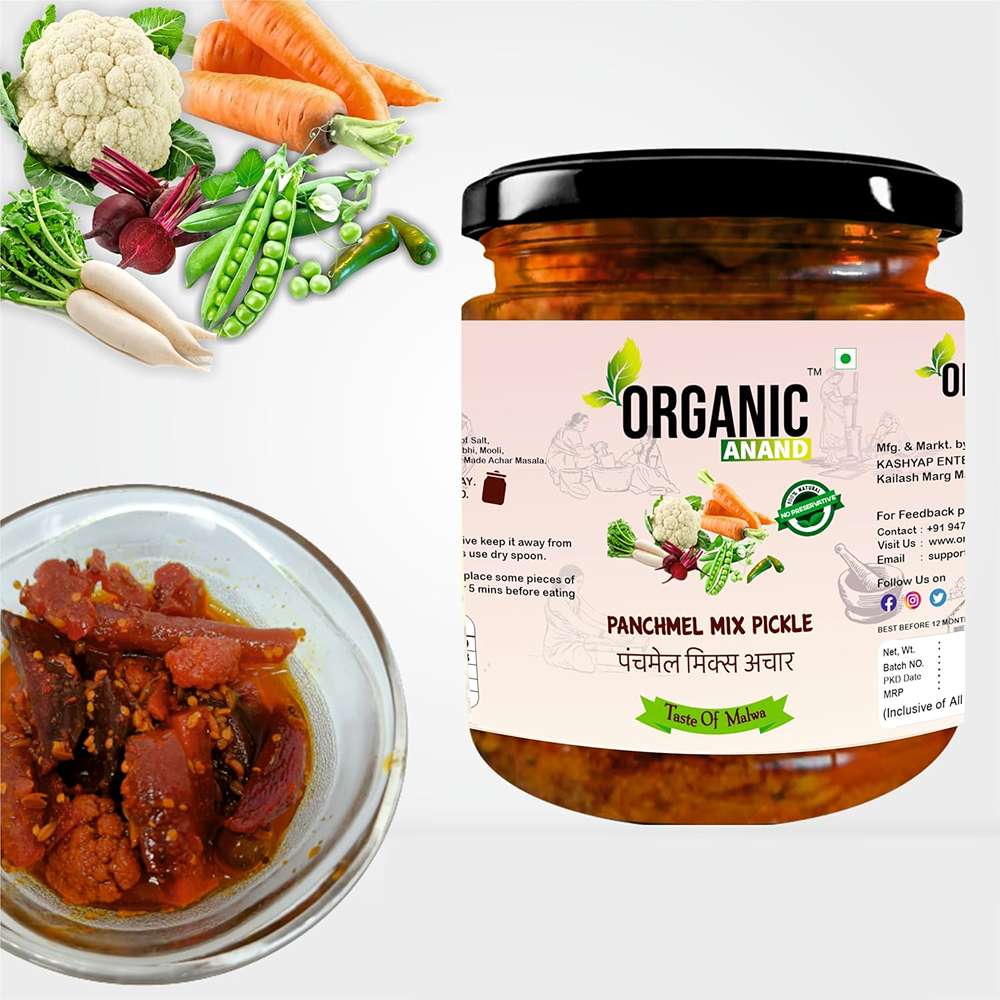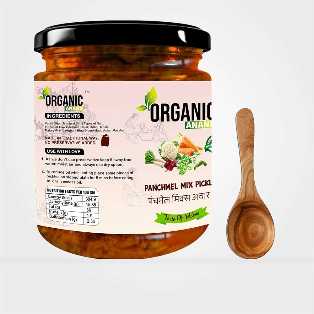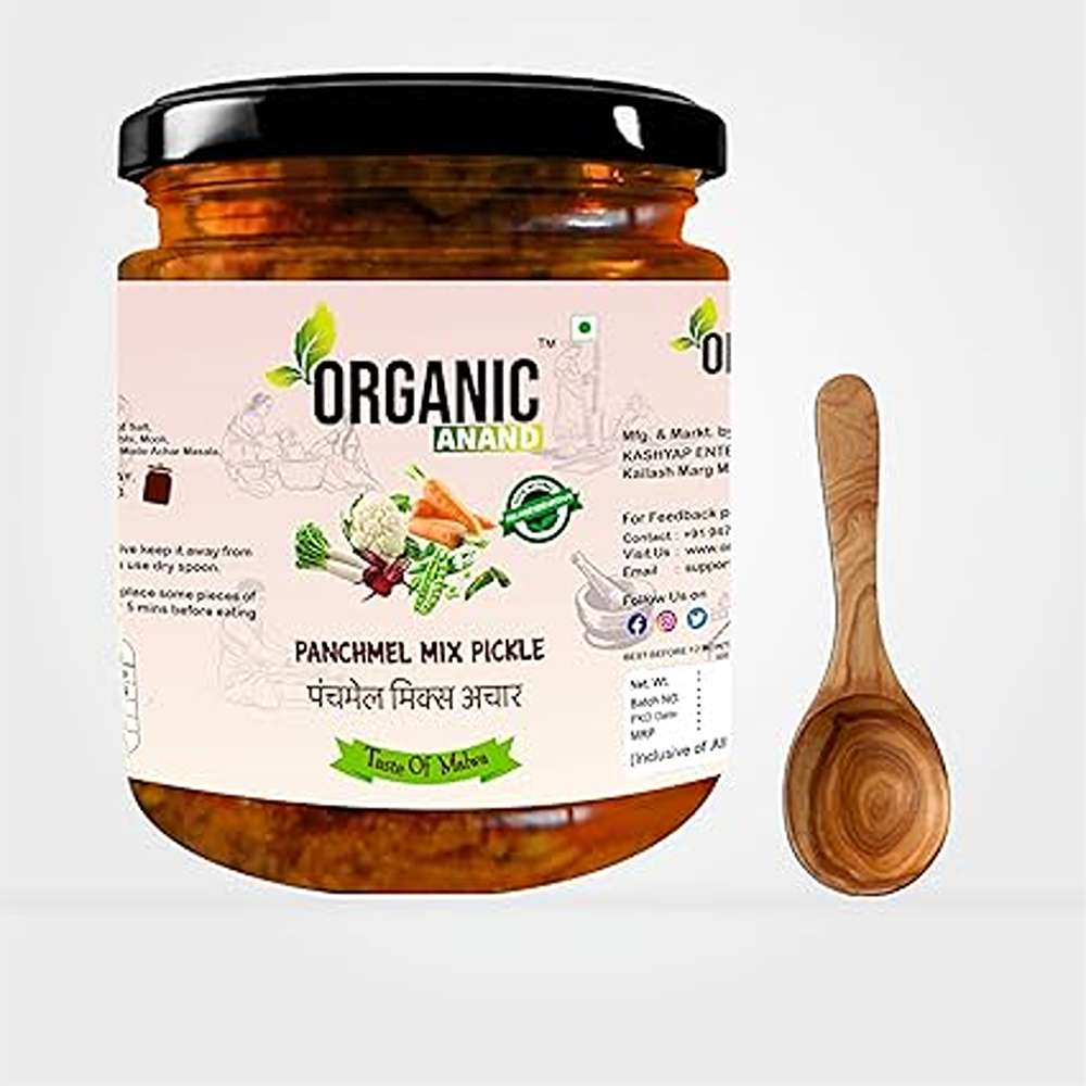 Organic Anand Natural Panchmel Pickle (Mixed Veg Aachar) Beetroot, Mooli, Matar Gajar, Gobhi, Shalgam ka Achar, Homemade Aachar with Neemwood Spoon (500gm, Pack of 1)