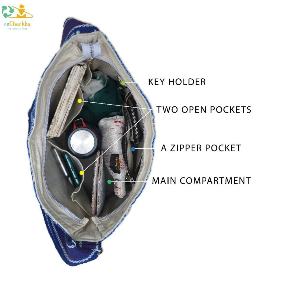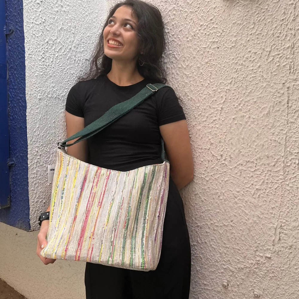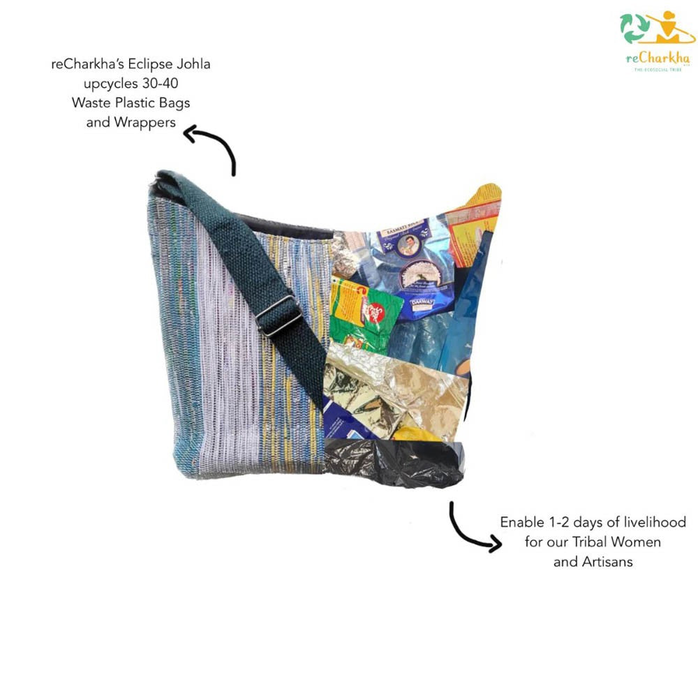 UPCYCLED HANDWOVEN Eclipse Tote is a much needed Face Lift of our head turning Jholas! A very spacious bag, it can be used as an everyday bag, for picnics or huge shopping sprees and so much more.It can be used not just as a sling bag, but also as a purse, because of its adjustable handle! This Jhola is our one-of-a-kind creation. Well, totally worth the buy!