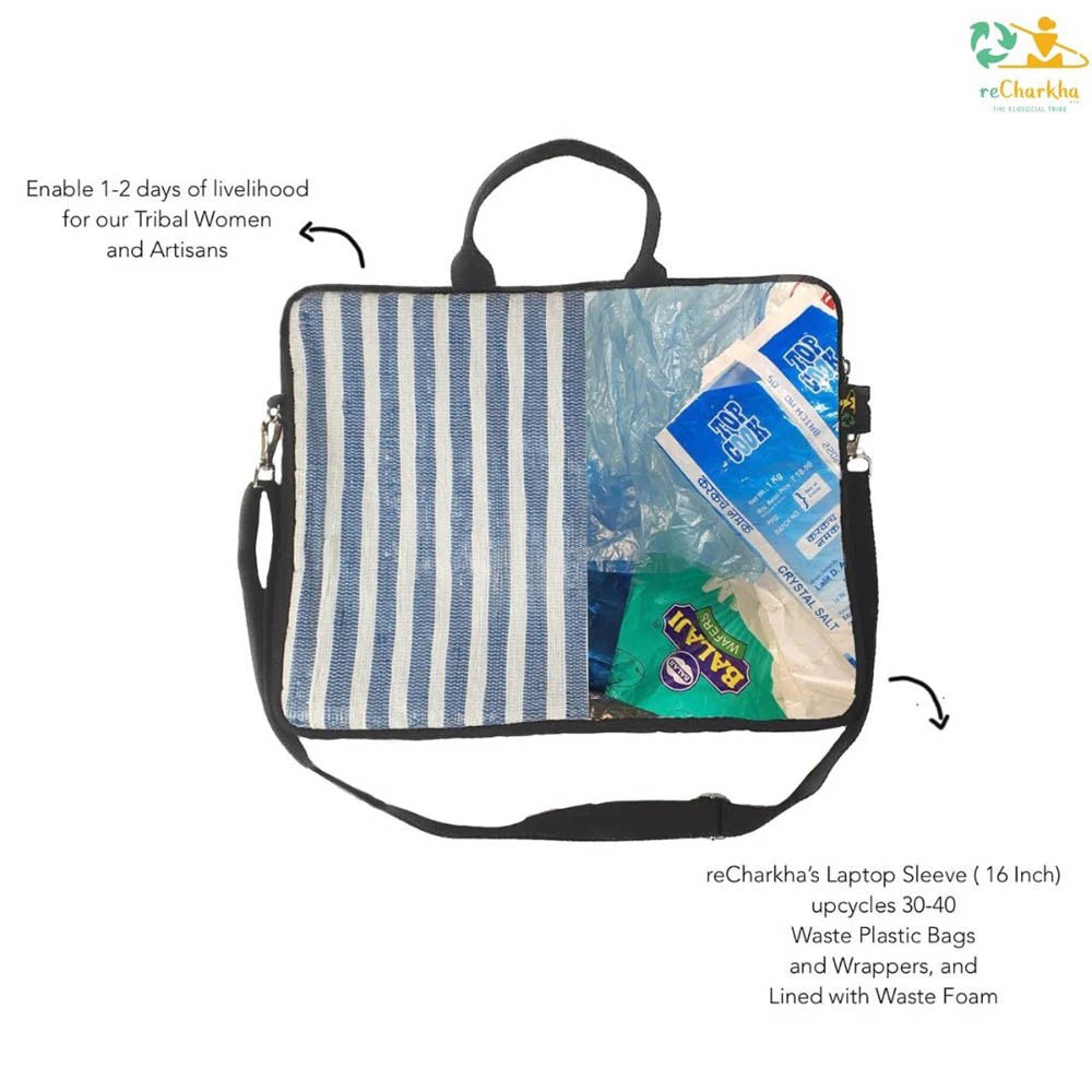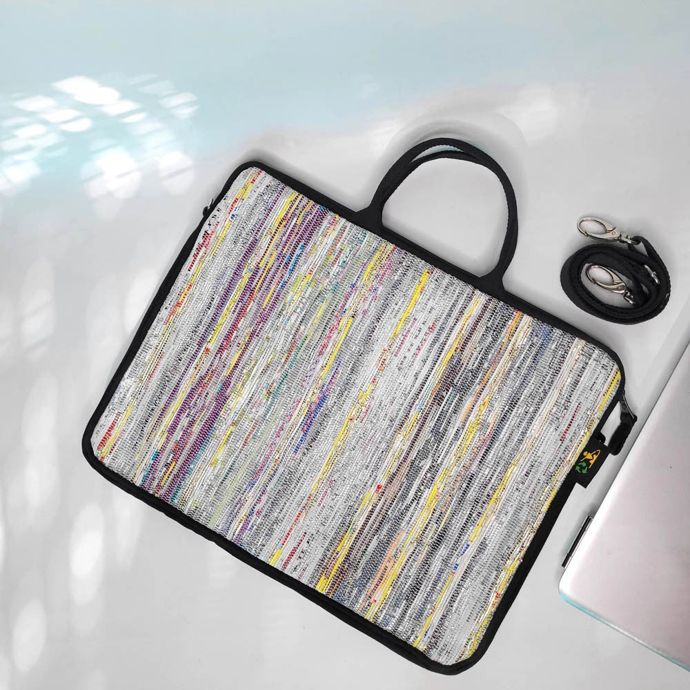 Sleek Smart, Carry around your laptop in-style, wrapped in reCharkha's UPCYCLED HANDWOVEN Laptop Sleeve Bag.