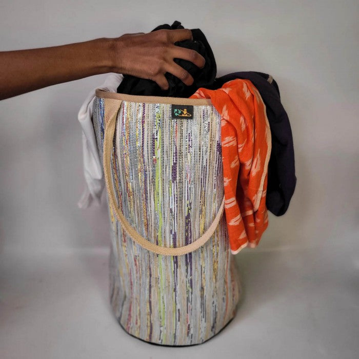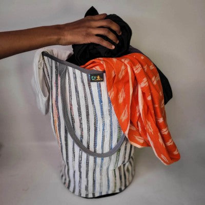 Make doing your Laundry easier with reCharkha UPCYCLED HANDWOVEN Laundry Bag! Eco-friendly and aesthetically pleasing, the reCharkha Laundry Bag is a must-have in your Laundry Room. It is lightweight yet stable and durable. When not in use, it can be folded and stored easily without taking much space. It is huge yet child-friendly which makes it perfect for families!