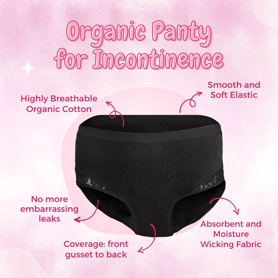 Our incontinence underwear is just like your regular underwear but with added layers of a stitched absorbent as well as leak proof fabric. It is ideal for moderate urine leaks. Our high-quality absorbent fabric and leak-proof layer provides full front and back coverage, keeping you free from leakage. The improved design and stitching quality make the underwear super comfortable providing a great fit.