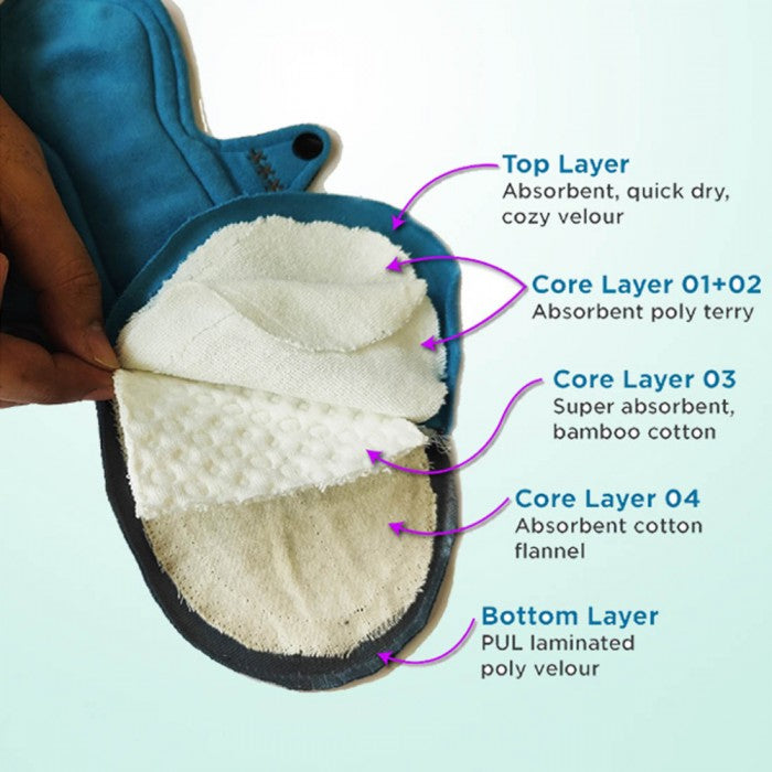 SochGreen cloth pad (gushy flow) are designed for those who face bleeding with a sudden gush. They absorb menstrual blood at a super-fast rate as compared to other cloth pads. If you don’t have sudden gush, you can go for our quick dry range of cloth pads for a medium and heavy flow.