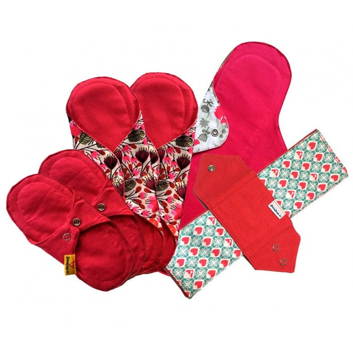 This Set Is A Starter Kit Of Assorted Cloth Pads That Is Ideal For Gifting. It Has Panty Liners For The Spotting Days, Medium Sized Pads For Normal Bleeding And A Large Pad For The Heavy Flow Day/Night. It Also Comes With A Cloth Pouch To Carry Spare Pads And Carry Back Soiled Pads.