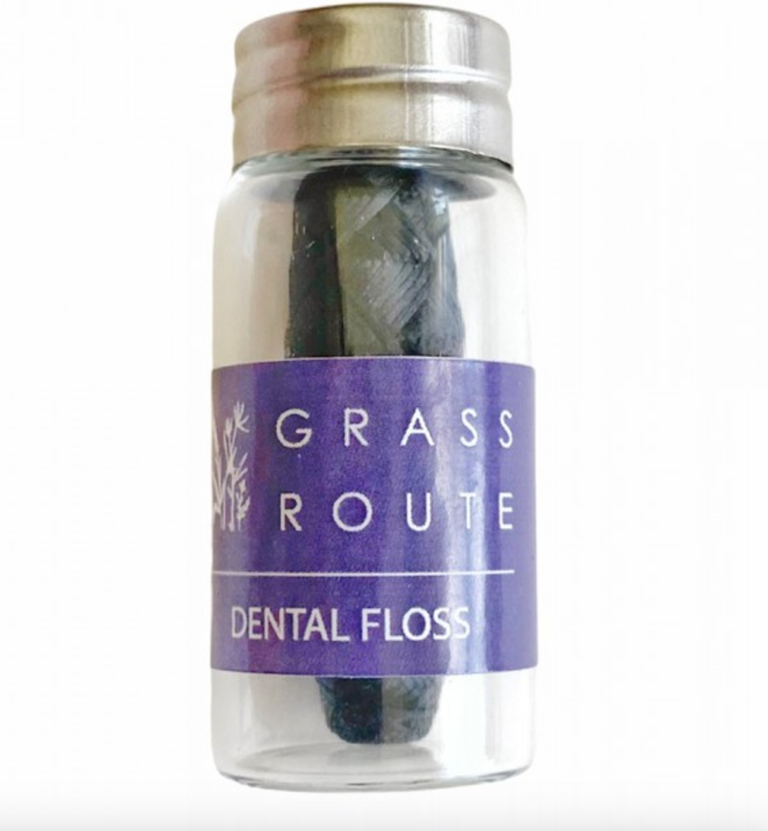 The Grass Route's Bamboo Dental Floss Is 30M Of Charcoal Mint Based Floss. It Is A Zero Plastic Product - With A Glass Bottle And A Metal Cap With A Notch To Cut The Floss. The Floss Is Based On Bamboo Fibres And Is Coated With Charcoal Mint For An Effective, Fresh Flossing Experience