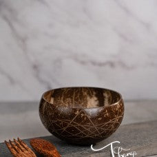 Our Palm Leaf Coconut Bowl With Cutlery Has The Feel Of A Polished Coconut Bowl, With Engraved Coconut Leaf Giving It A Tropical Look. They Are Unique And Handcrafted By Artisans, Using Traditional Carving Techniques.Just Like The Jumbo, Our Palm Leaf Bowls Are Perfect For Those Who Want To Make Their Creations Bigger And Better, As They'Re 30% Bigger Than Our Original Coconut Bowl. Our Coconut Bowls Are Sourced And Polished In Kerala, Called The Land Of Coconuts. Coconuts From This Area Are Stronger And Thicker Making It Ideal To Be Used As Coconut Bowls. The Shells Are Offered To Us By Nature And Each Shell Is Unique Hence There May Be Slight Variations In Size.