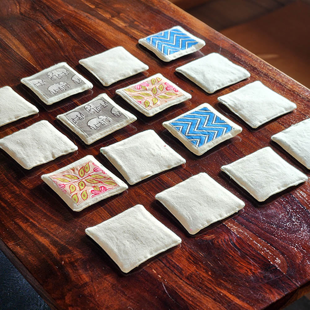 Unwrap the gift of learning with our Artisanal Indian Fabric Memory Game! Made from vibrant and eco-friendly fabrics, this memory game is an eco-friendly games exploring the rich hues and textures of traditional Indian fabrics. Say goodbye to plastic and hello to sustainable fun! Perfect for bonding with your children, this washable game is a colorful companion to nurture their focus and creativity. Let the memories unfold with every flip of the fabric card!